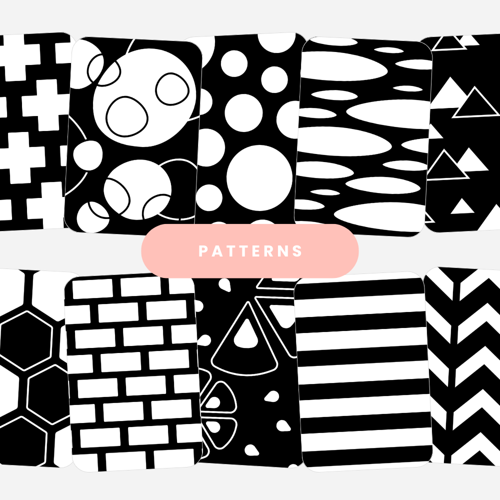 • High-contrast black & white pattern cards