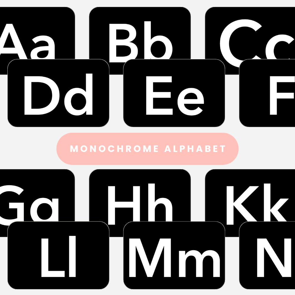Monochrome Alphabet Flashcards – Perfect for Early Learning and Visual Development!